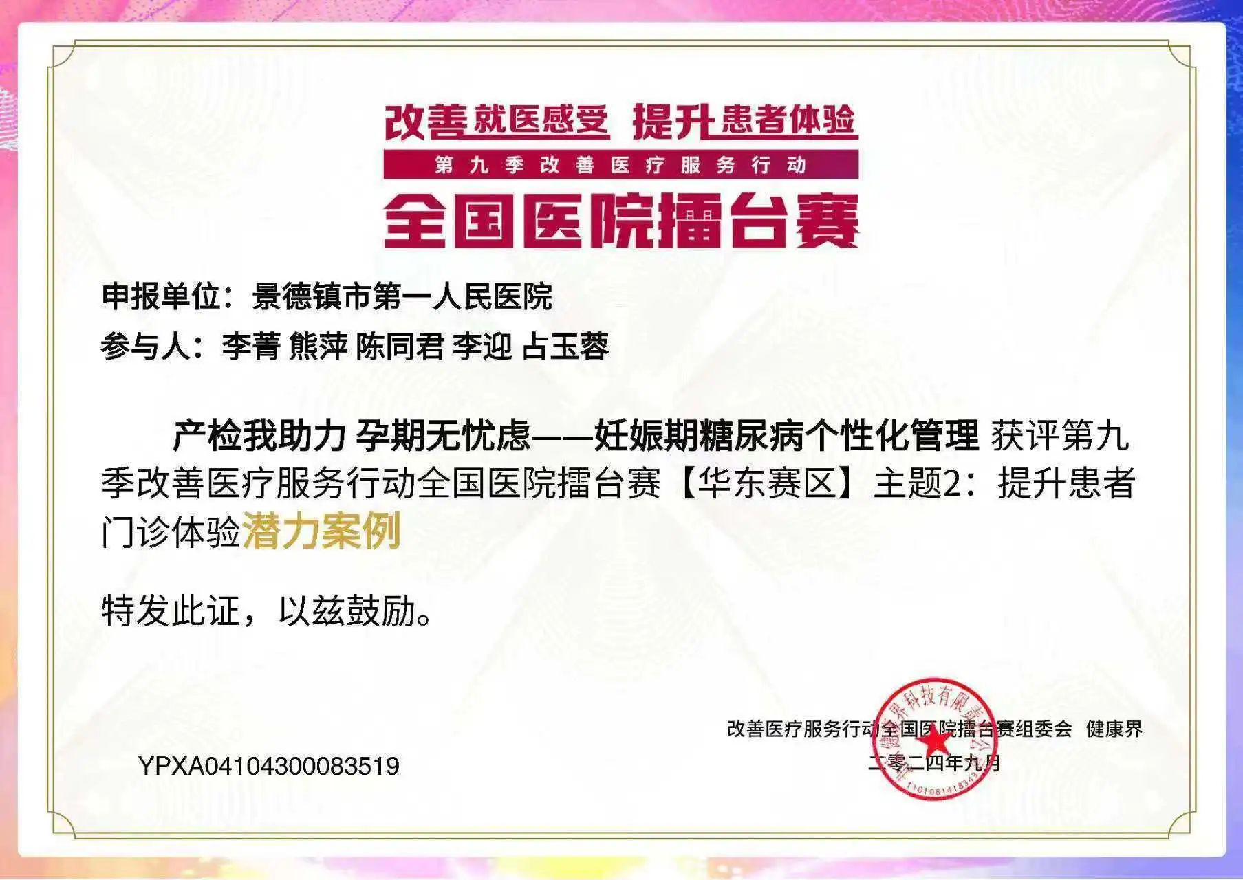 9月6日至7日,由国家卫生健康委员会医政司指导,健康界与中国医学创新联盟海南博鳌医学创新研究院联合主办的“第九季改善医疗服务行动全国医院擂台赛华东赛区区域决赛”在浙江杭州举行。市一院推选的《康复之路,携手同行》《产检我助力孕期无忧虑——妊娠期糖尿病个性化管理》两个改善医疗服务行动案例经过严格初筛、网络投票、专家评审等多个环节,从全国4896个案例中脱颖而出,成功进入决赛,并荣获优秀案例和潜力案例。